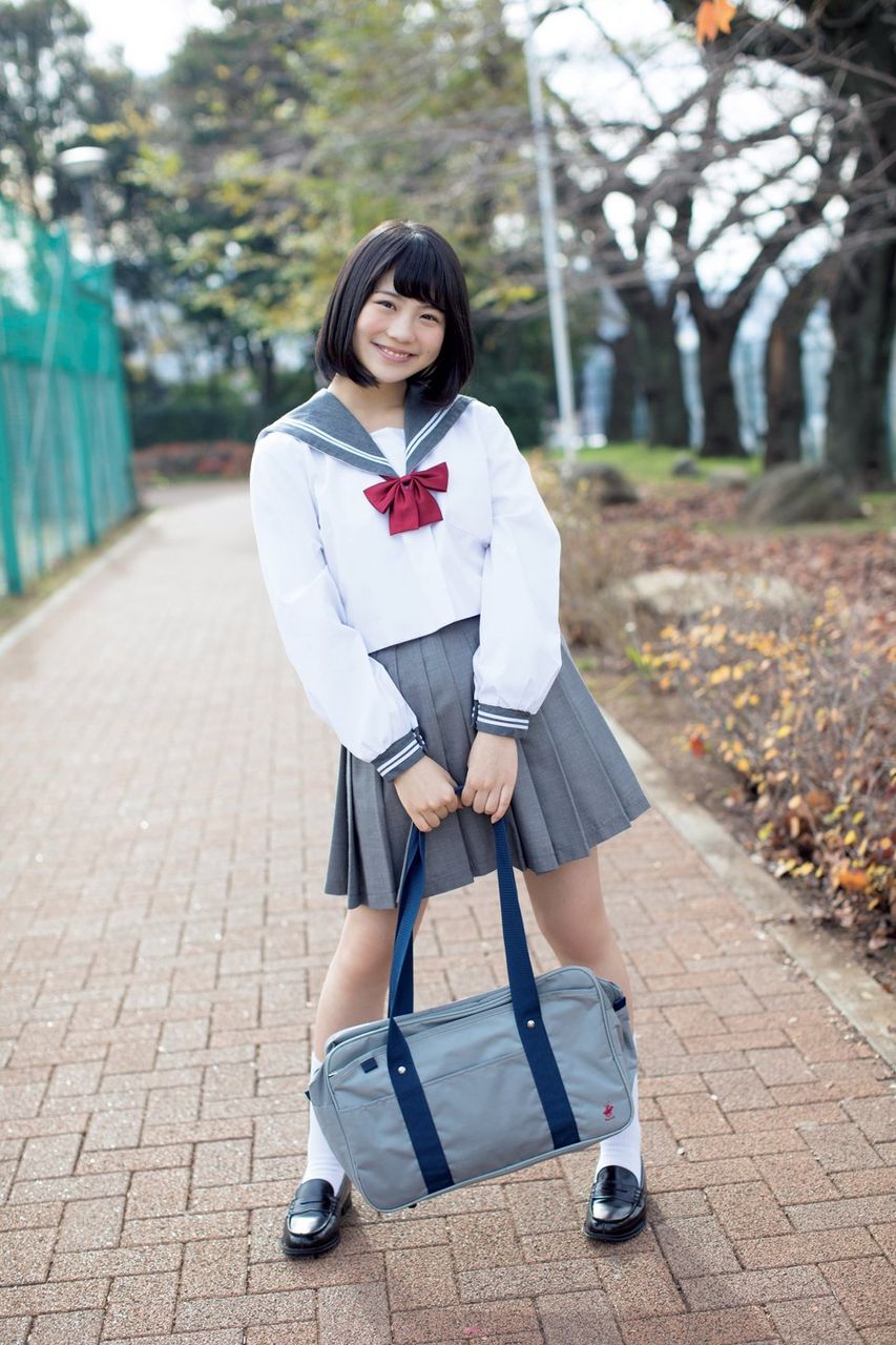 グラビアでは、制服姿でプールに入ったり、肩ひものないバンドゥビキニ姿の写真などが掲載された。