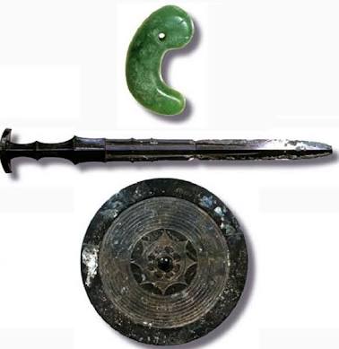 鏡は崇神天皇、剣はヤマトタケルの時代か。