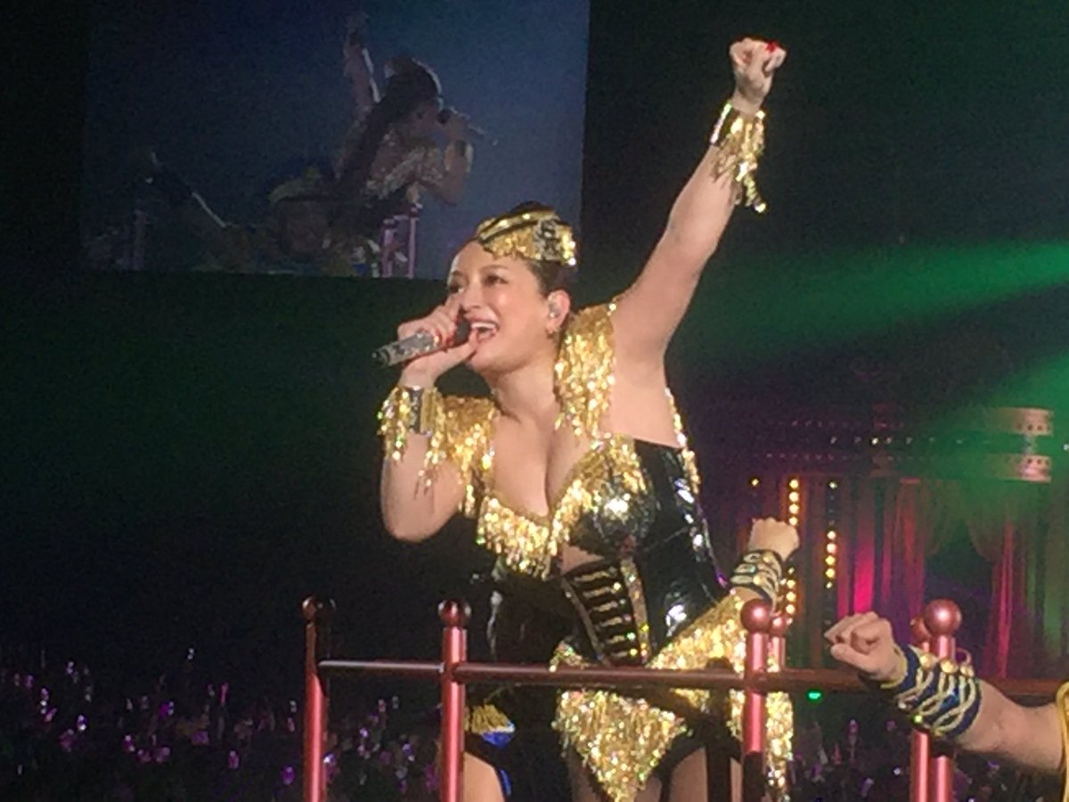 声だけでなく、愛らしいルックスと極太の二の腕のギャップに場内が唖然とするも本人はお構いなし。