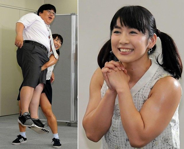 「私に持ち上げられると縁起が良いんです」と、自身が選んだ優勝候補で体重100キロのタイムマシーン・関太を軽々と持ち上げた。
